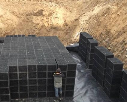 雨水收集裝置并不是單純的一個大儲水罐,而是采用無毒無害的聚丙乙烯材料做成的一個個幾十厘米見方的籠狀儲水器。